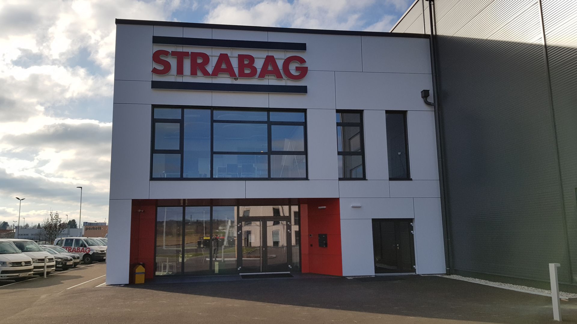 Den Farben der Firma STRABAG AG wurde das Verwaltungsgebäude in Ybbs nachempfunden, wobei den Blickfang eindeutig der Eingangsbereich darstellt. Die Fugenteilung der Fassade wurde bewusst unrhythmisch angeordnet.